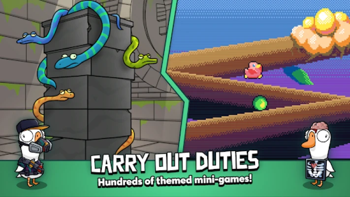 Goose Goose Duck is a social deduction game where geese complete tasks while ducks sabotage and try to eliminate them. Play as a goose to survive or a duck to wreak havoc, with proximity voice chat, unique roles, custom cosmetics, and diverse environments to explore.