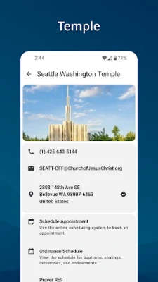 •Temples. View your assigned temple, temples nearest your current location, ordinance schedules, and temple recommend expiration reminders.