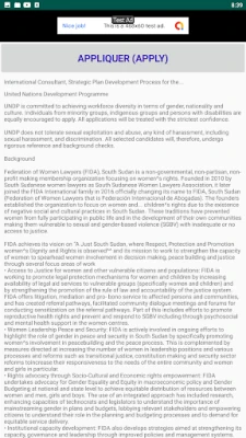 Certainly, with the South Sudan Jobs app there is no need to have more job search apps installed in your smartphone / Table. This is because the process of searching and applying for latest Jobs in South Sudan is now a very easy process right on your mobile phone; anywhere in the world you can get your dream job. Surely, you will never regret installing this app.